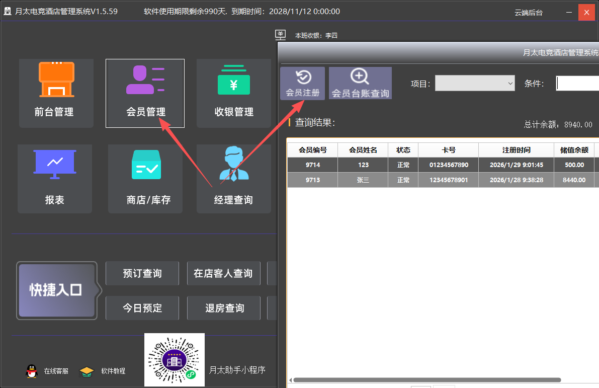 月太电竞酒店管理系统